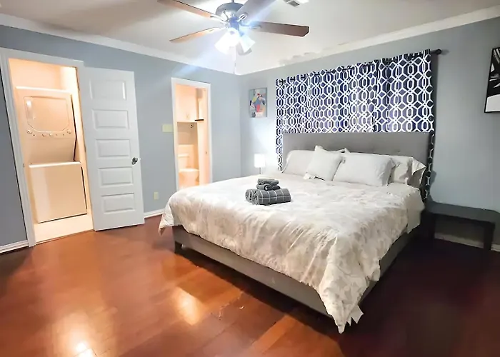 Die 1Br Montrose King Suite With Washer And Dryer bietet eine einmalige Gelegenheit für Reisende, die das bunte Leben von Montrose entdecken möchten. Diese stilvolle Unterkunft vereint modernen Komfort mit der faszinierenden Atmosphäre eines der schillerndsten Stadtteile von Houston. In unmittelbarer Nähe warten eine Vielzahl von Freizeitmöglichkeiten und kulturellen Erlebnissen.